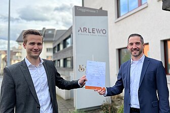 Fabian Kümin und Claudio Züger (KAM) übernehmen stellvertretend die Gewinner-Urkunde.